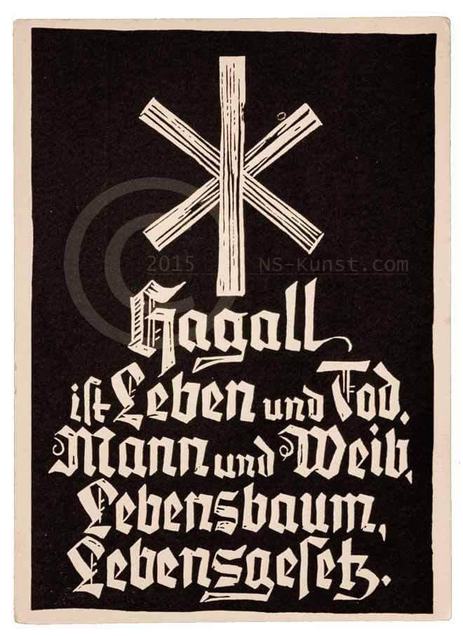 Rune meanings can be discussed at infinitum so importantly, one must take into account the period of interest. This is a Third Reich interpretation of the rune: “Hagall ist Leben und Todt, Mann und Weib, Lebensbaum, Lebengesetz.” In English this means ‘Hagall is life and death, man and woman, the tree of life and the laws of life.’